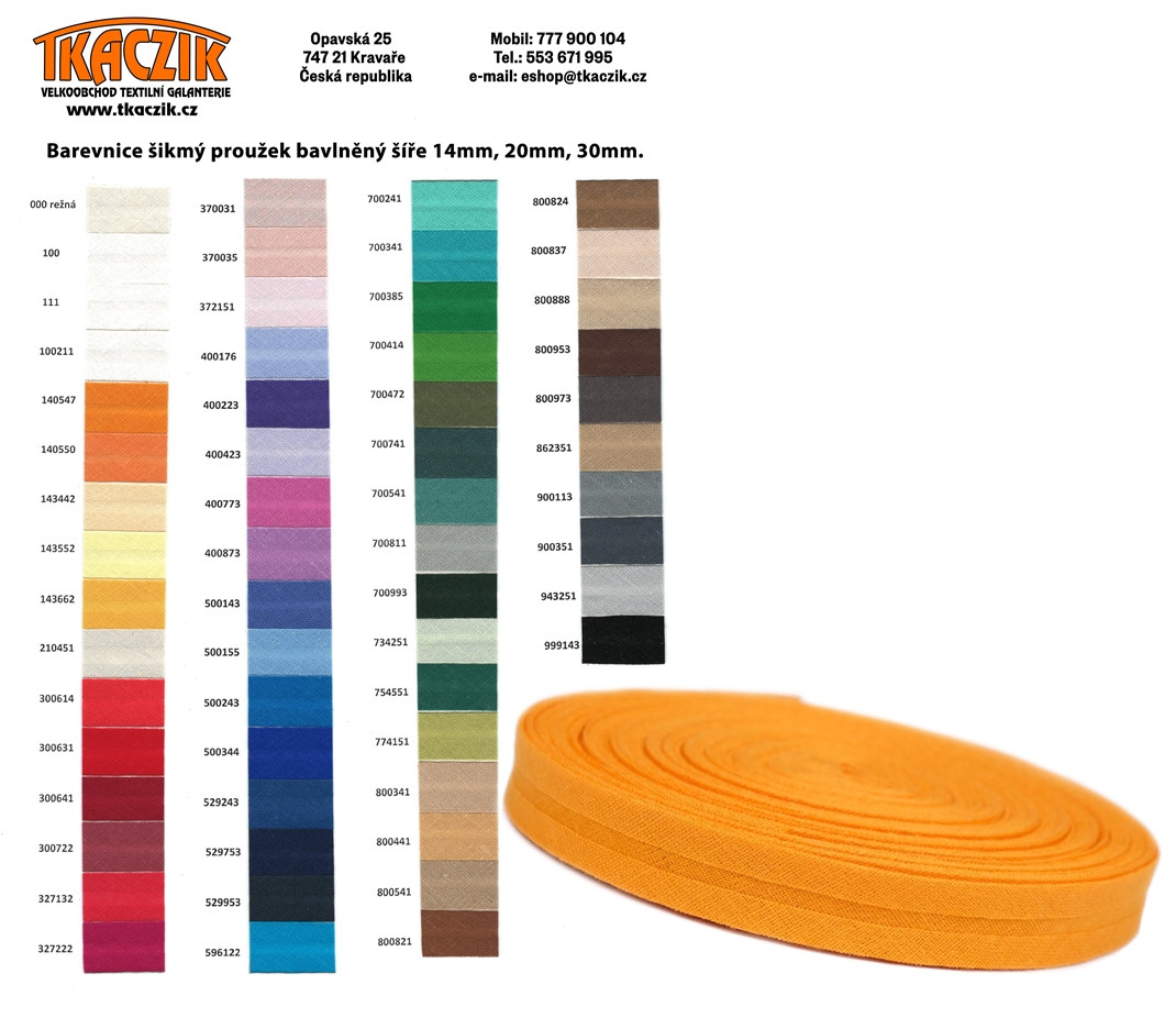 Podrobný popis (Šikmý proužek BAVLNA šíře 14mm)