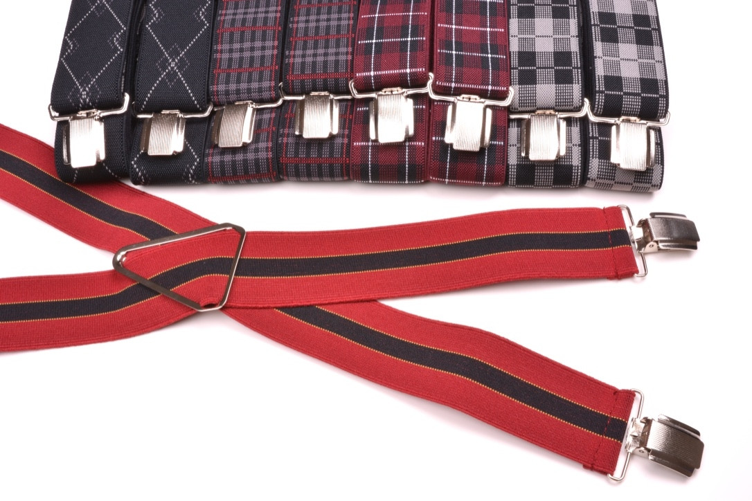 Elegantní pánské šle o šířce 4cm. Kvalitní české šle se připěvňují ke kalhotám pomocí kovových žabek. Baleno po 5ks v různých barvách. Alternativní název: kšandy, šle