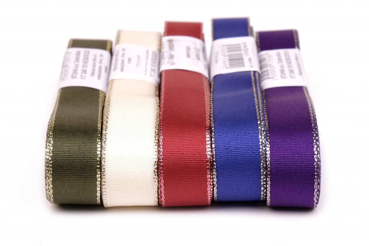 Stuha taftová s rexorovým okrajem vhodné ke svatebním příležitostem jak k dekoraci na balíčky tak o ozdobě. Alternativní název: stuha s rexorem, stuha svatební, stuha s lurexem, adjustačka, mašle, STUHA.Složení: 91% polyester 9% MTP