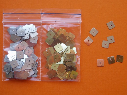 velikost 7x7mm, baleno v sáčku po 3g. Flitry slouží k ozdobě různých oděvních doplňků nebo oblečení.