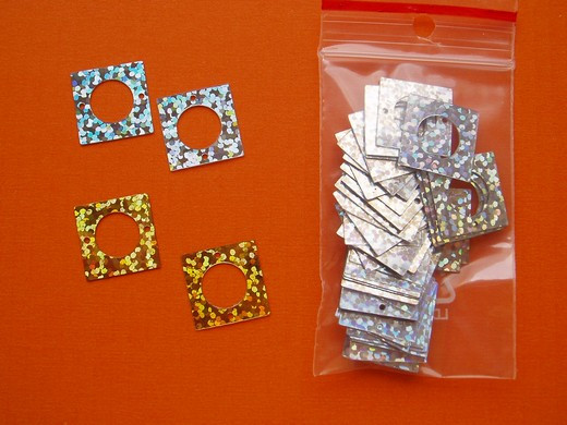velikost 15x15mm, baleno v sáčku po 3g. Flitry slouží k ozdobě různých oděvních doplňků nebo oblečení.