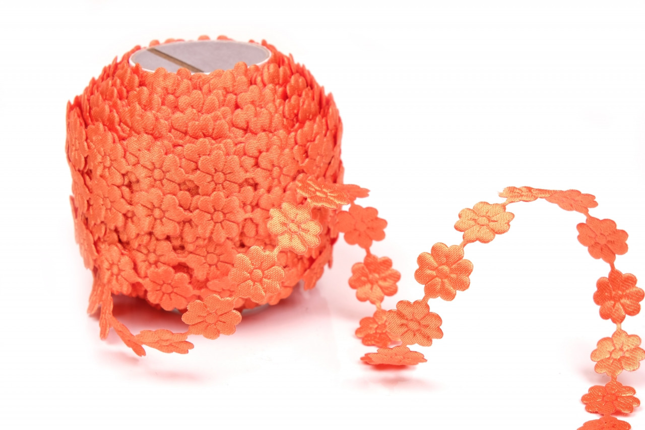 Aplikace atlasové nebo saténové metráž. Saténová aplikace v metráži ve tvaru květinky se našívá na oděvy, lepí se jako dekorace. Květinky lze také nastříhat a použít jako konfety na posyp nejen svatební tabule. Alternativní název: květy v metráži, květinky metráž, květinka, aplikace kytičky, atlasové květinky.
