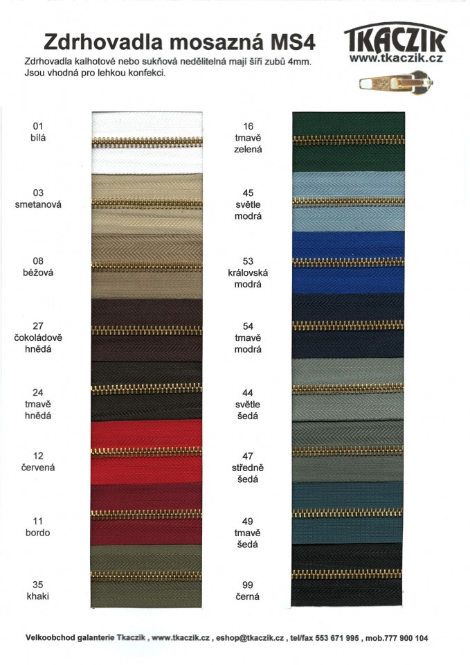 Textilní galanterie TKACZIK » Zipy, zdrhovadla, uzávěry » kalhotová mosazná MS4 4mm