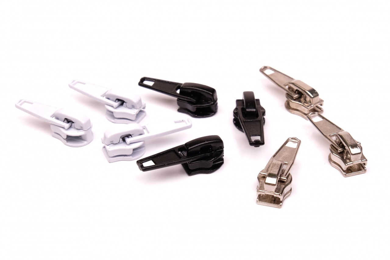 Jezdec 5mm lakovaný pro spirálové zipy, šíře zubů 5mm. Jezdec je s aretací tzv. autolock vhodný k metrážovým zipům používavé na tašky, batohy, spacáky, pytle atd. Alternativní název: jezdec pro plastové zdrhovadlo, uzávěr, přívěsek.