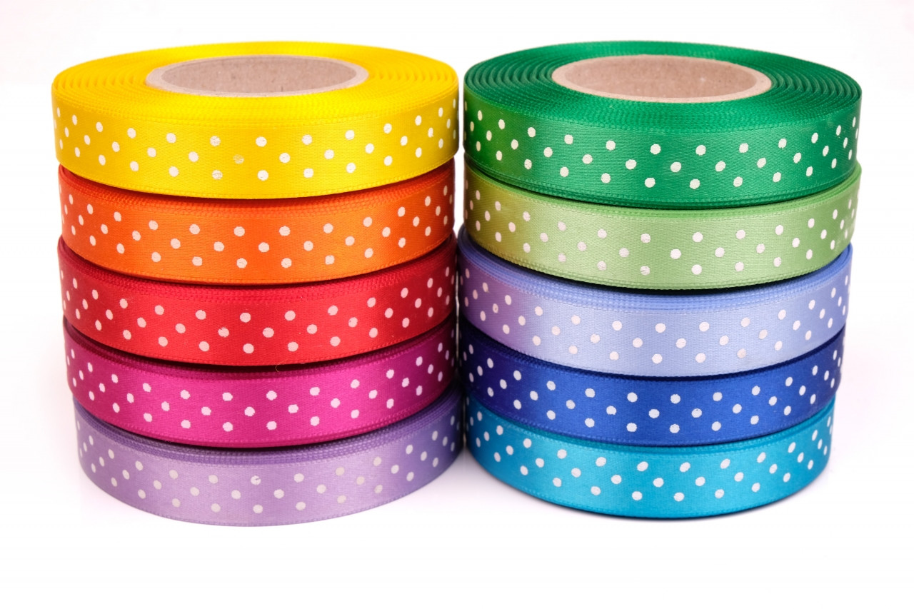 Stuha atlasová oboulící šíře 15mm puntík