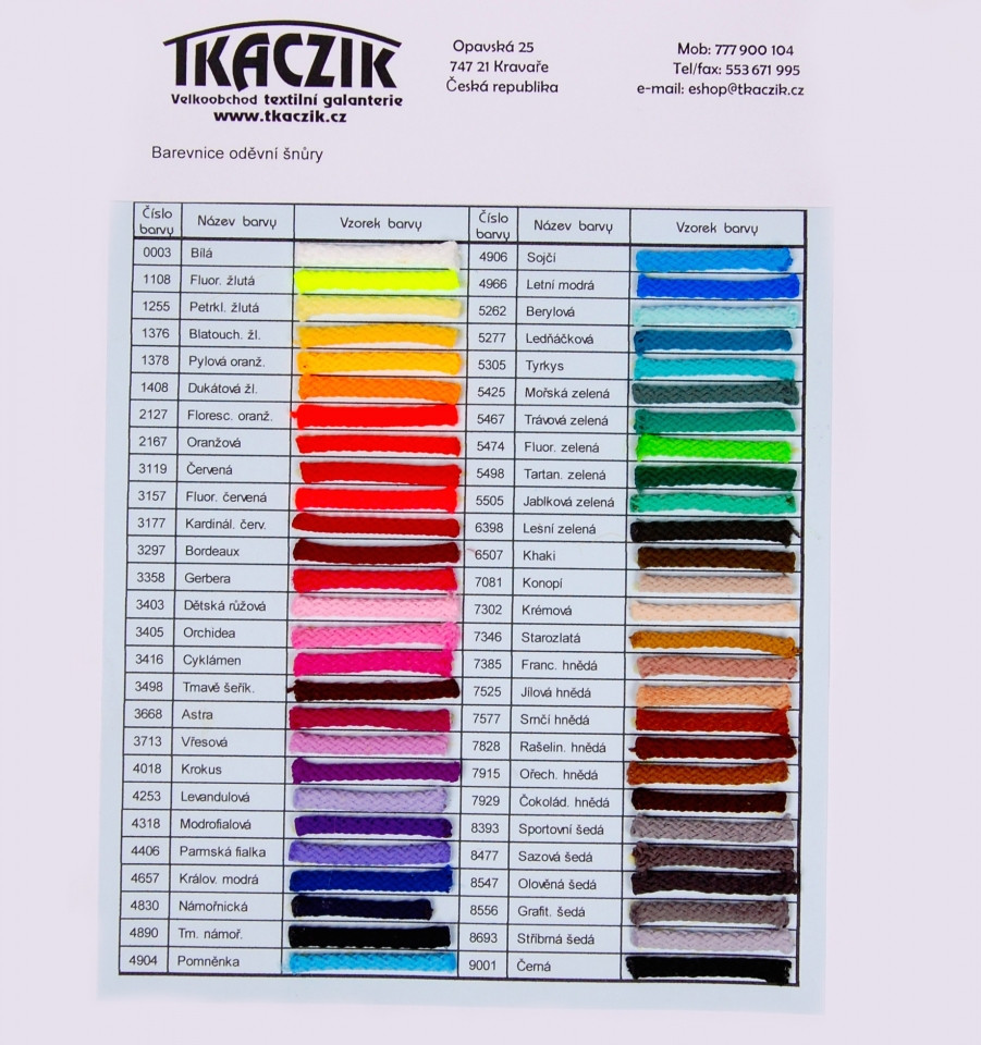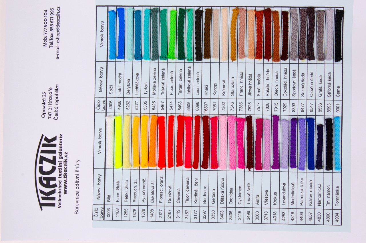 Textilní galanterie TKACZIK » Šnůry, šnůrky a provázky » šnůry oděvní