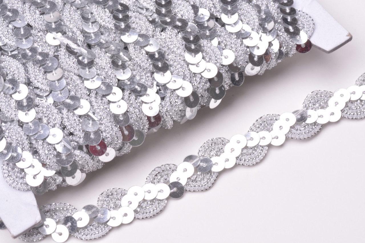 Prýmek s flitry C035 šíře 15mm stříbrný