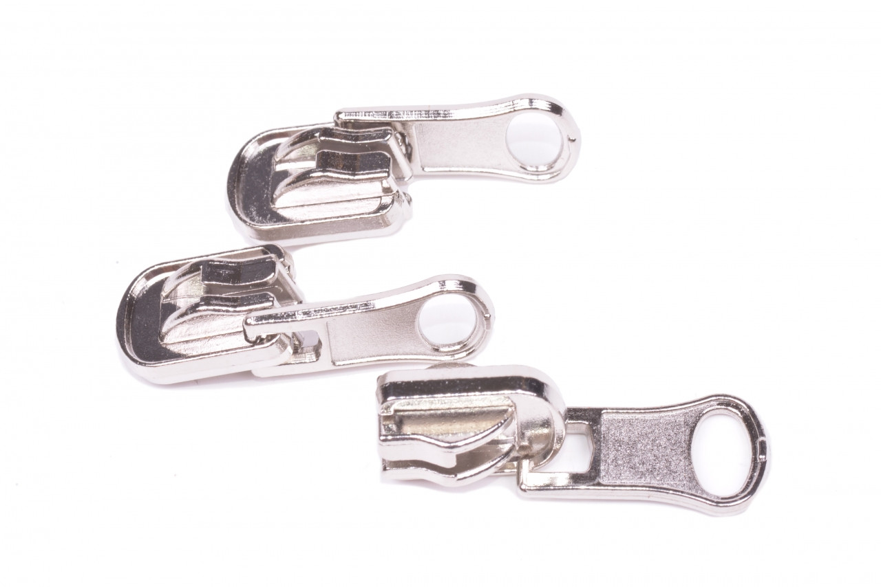 Kovové jezdce se používají ke spirálovým zipům s šířkou 5 mm. Jezdce mají aretaci, tedy brzdu a překlápěcí poutko. Jsou vhodné do oboustranných bund, vest, mikin apod.