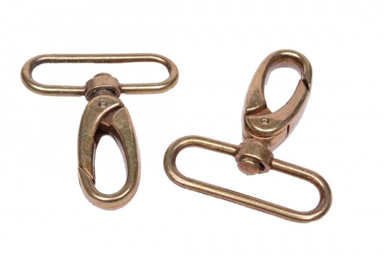 Karabina kovová otočná - použití: připojení popruhů na tašky, kabelky, klíčenky, psaníčka nebo brašny.