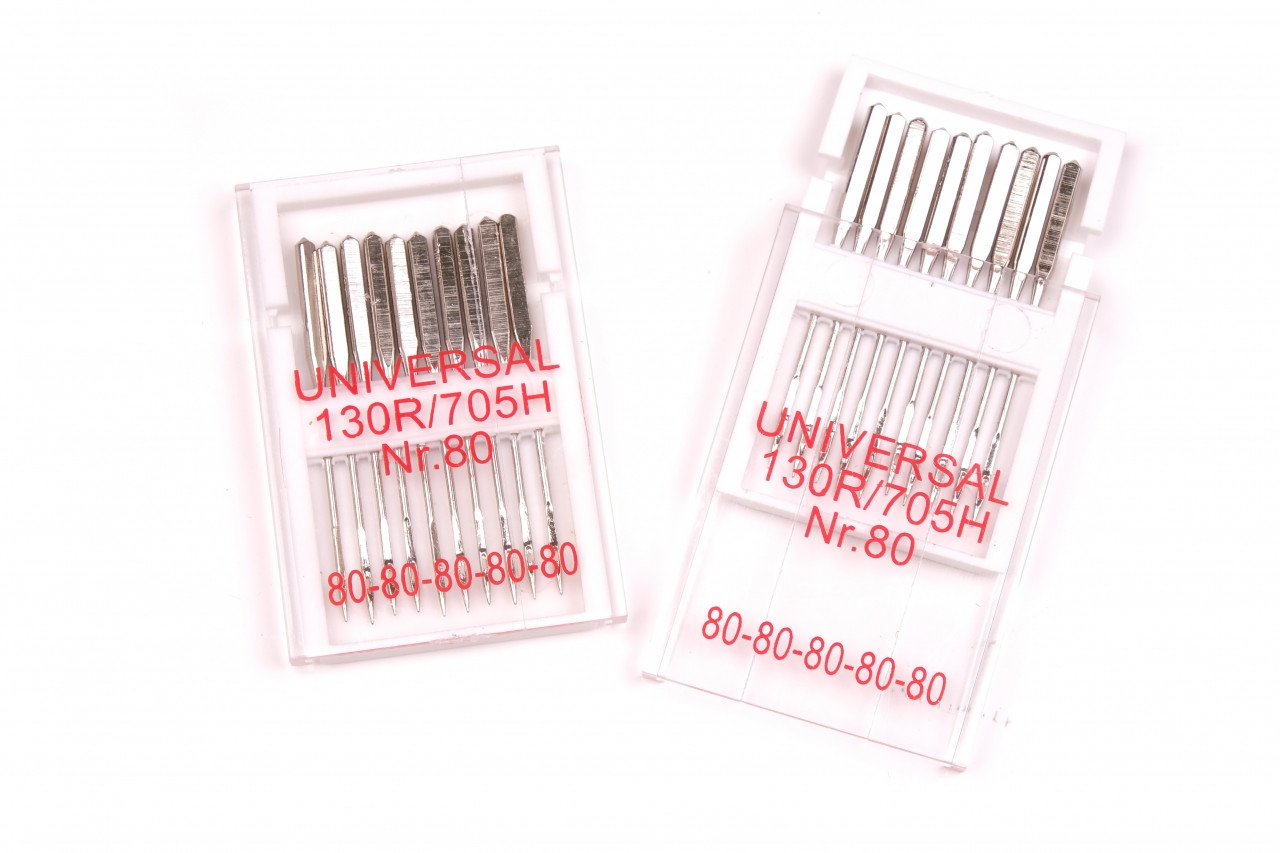 Standartní univerzální strojová jehla s ploškou pro domácí šicí stroje.