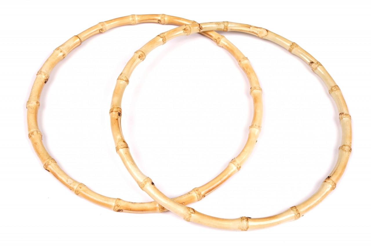 Ucha na tašky jsou vyrobeny z bambusového dřeva. Průměr ucha je 19cm. Vhodné pro výrobu tašek a kabelek. Můžete také využít na výrobu lapače snů.