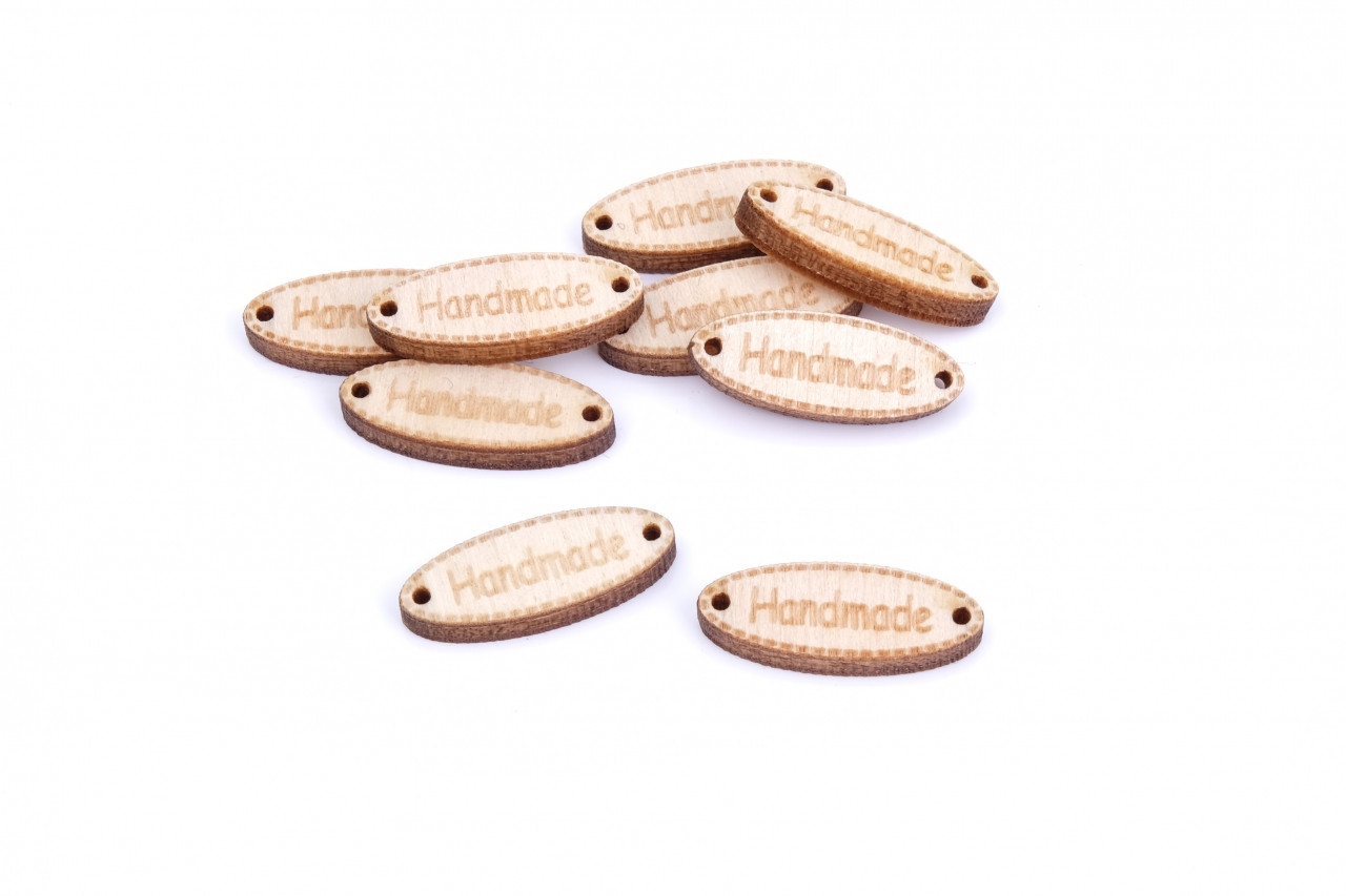 Štítek dřevěný oválný - cedulku lze díky dvěma postranním dírkám provléci šňůrkou a pověsit na dekoraci nebo našít, slouží jako originální štítek na Vaše ručně dělané výrobky, lze použít také jako dekorace a pomocí lepidla originálně zabalit dárky.