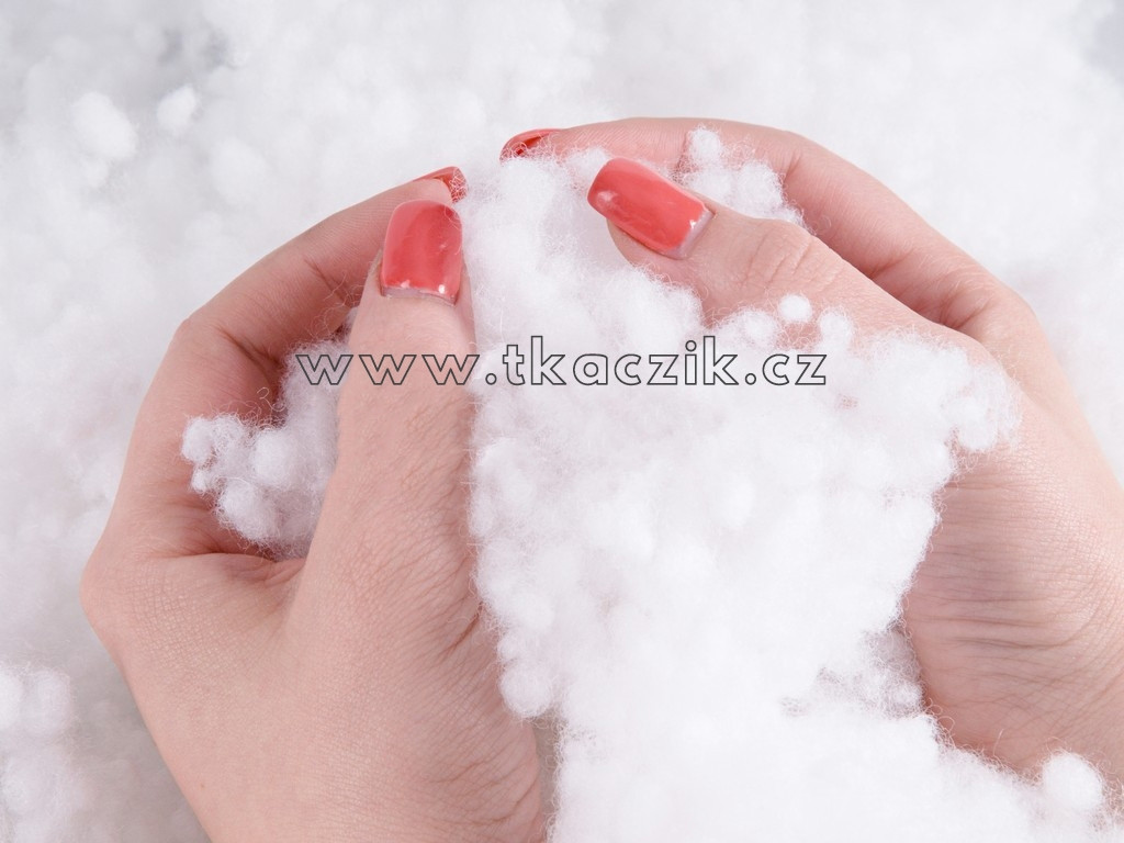 Duté vlákno ve formě polyesterových kuliček - jako výplň polštářů, kojících podkov, výrobu hraček nebo různých šitých dekorací.
