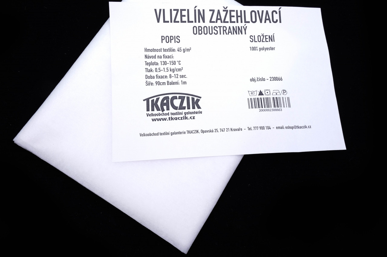 Vlizelín oboustranně zažehlovací 45g/m rozměr 100x90cm