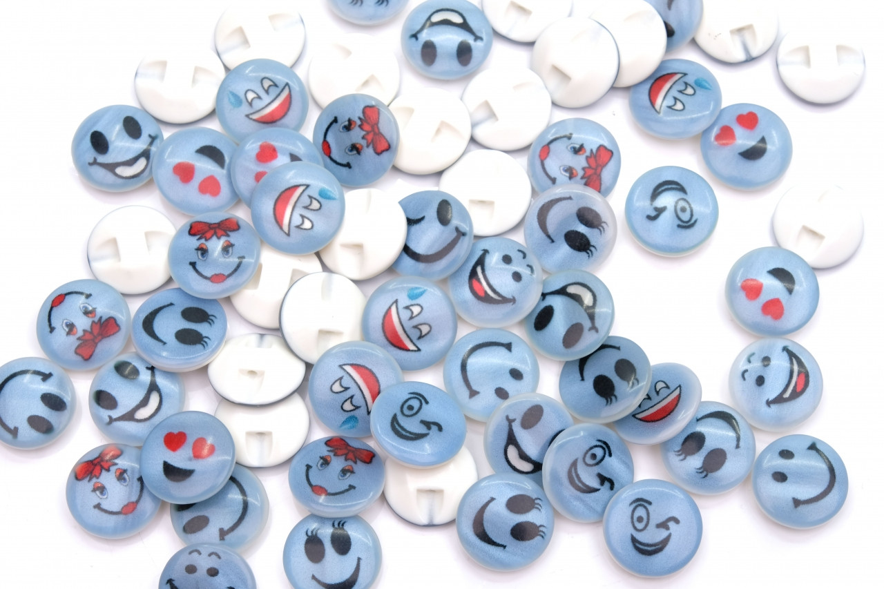 Knoflík 186 modrý smajlík mix vel.22 - 14mm