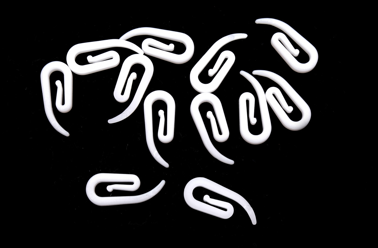 Záclonový háček na plastové záclonové kroužky.