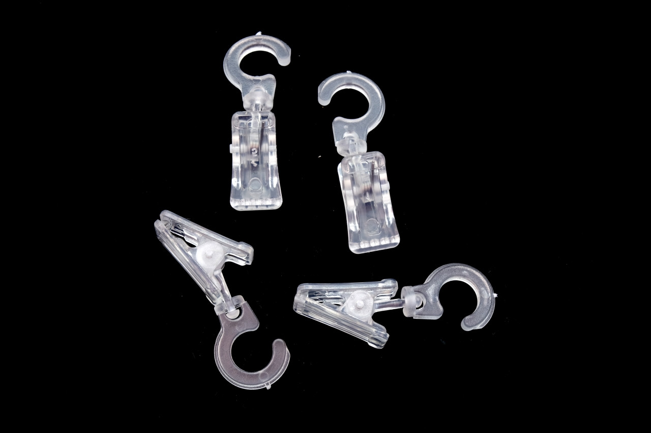 Žabky využijete na záclony. Díky materiálu, ze kterého jsou vyrobené, mají nízkou hmotnost. Háček pohodlně zavěsíte na garnýže a jsou otočné! Žabky mají na koncích zoubky.