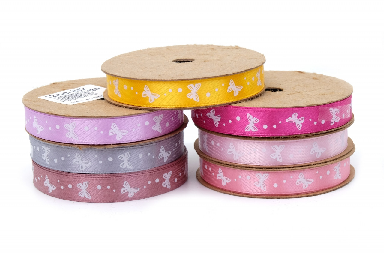 Podrobný popis (Stuha atlasová vzor motýl šíře 12mm)