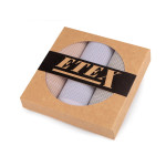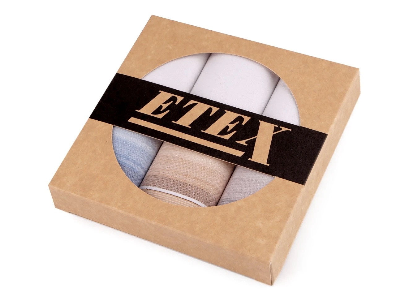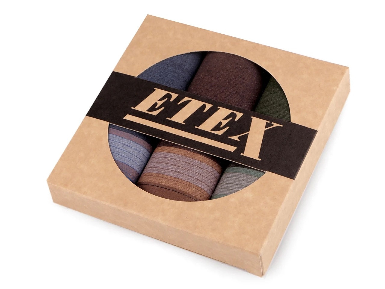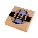 Sada dámských kapesníků je vhodná jako dárek pro ženy, které si potrpí na kvalitu a eleganci. Jsou ideální volbou pro každodenní použití i speciální události. Mají různé dezény od proužků až po káro. Jsou velice kvalitní, oceníte jejich jemnost i dlouhou životnost. Kapesníky jsou zabalené v dárkové krabičce přírodního vzhledu s kulatým průhledem. V krabičce najdete 3 čtvercové kapesníky. Skladba kapesníků se v jednotlivých krabičkách může lišit. Kapesníky jsou vyrobené ze 100% bavlny, prochází náročnou atestací na kvalitu materiálu a barevnou stálost v rámci normy EKO-TEX100.