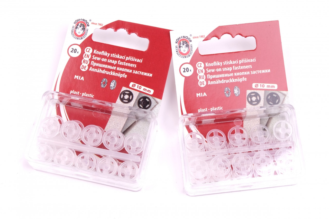 Stiskací knoflíky MIA (3) 10mm karta 20ks čirá